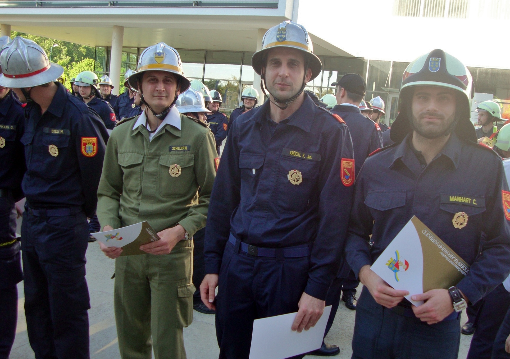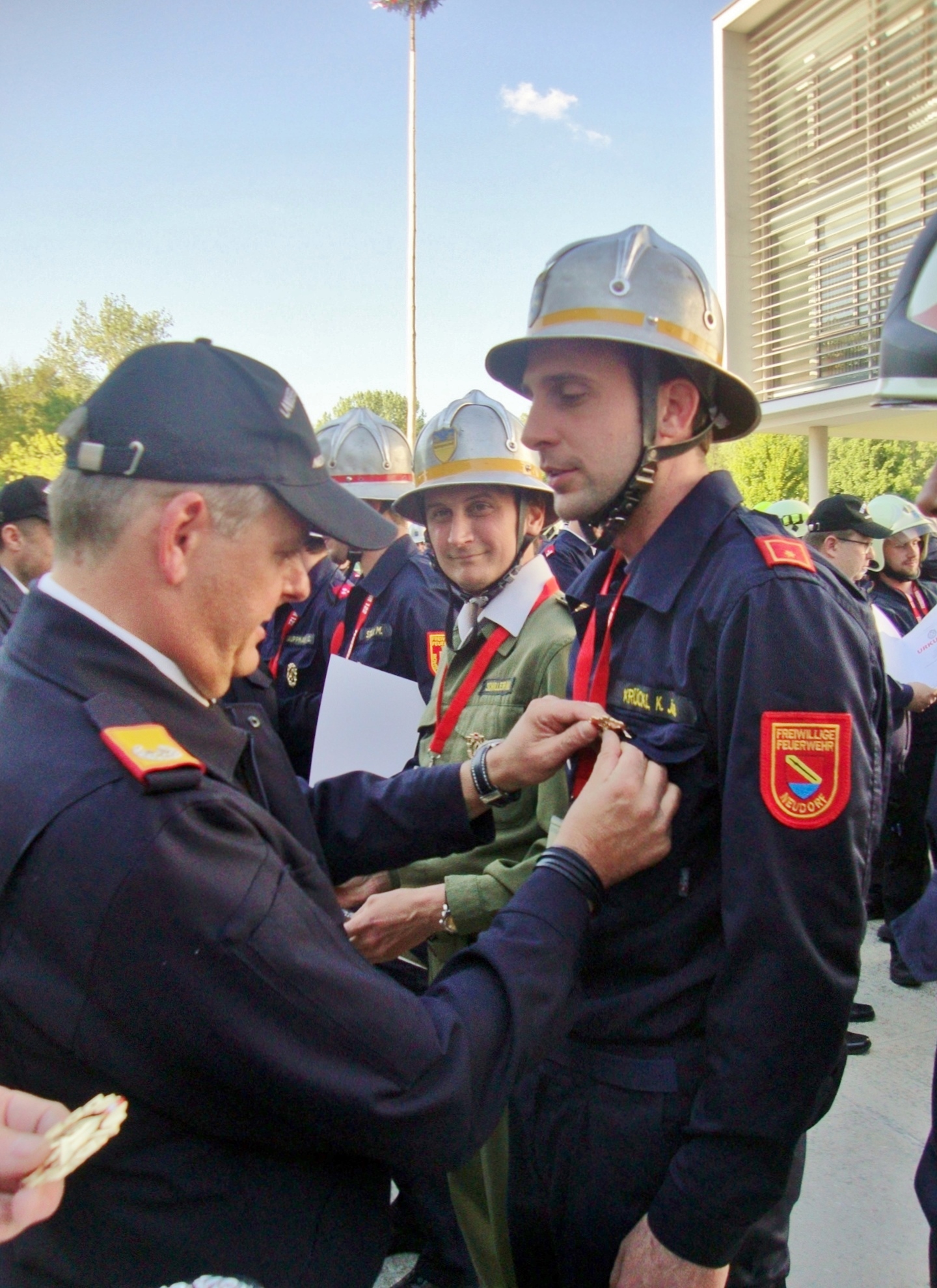 Im Anschluss Gratulierte Kommandant OBI Johannes Guganeder den beiden Teilnehmer der Feuerwehrleistungsabzeichen (FLA) Gold, BI Karl Krückl jun. und BM Clemens Manhart, zu ihrer absolvierten Ausbildung.